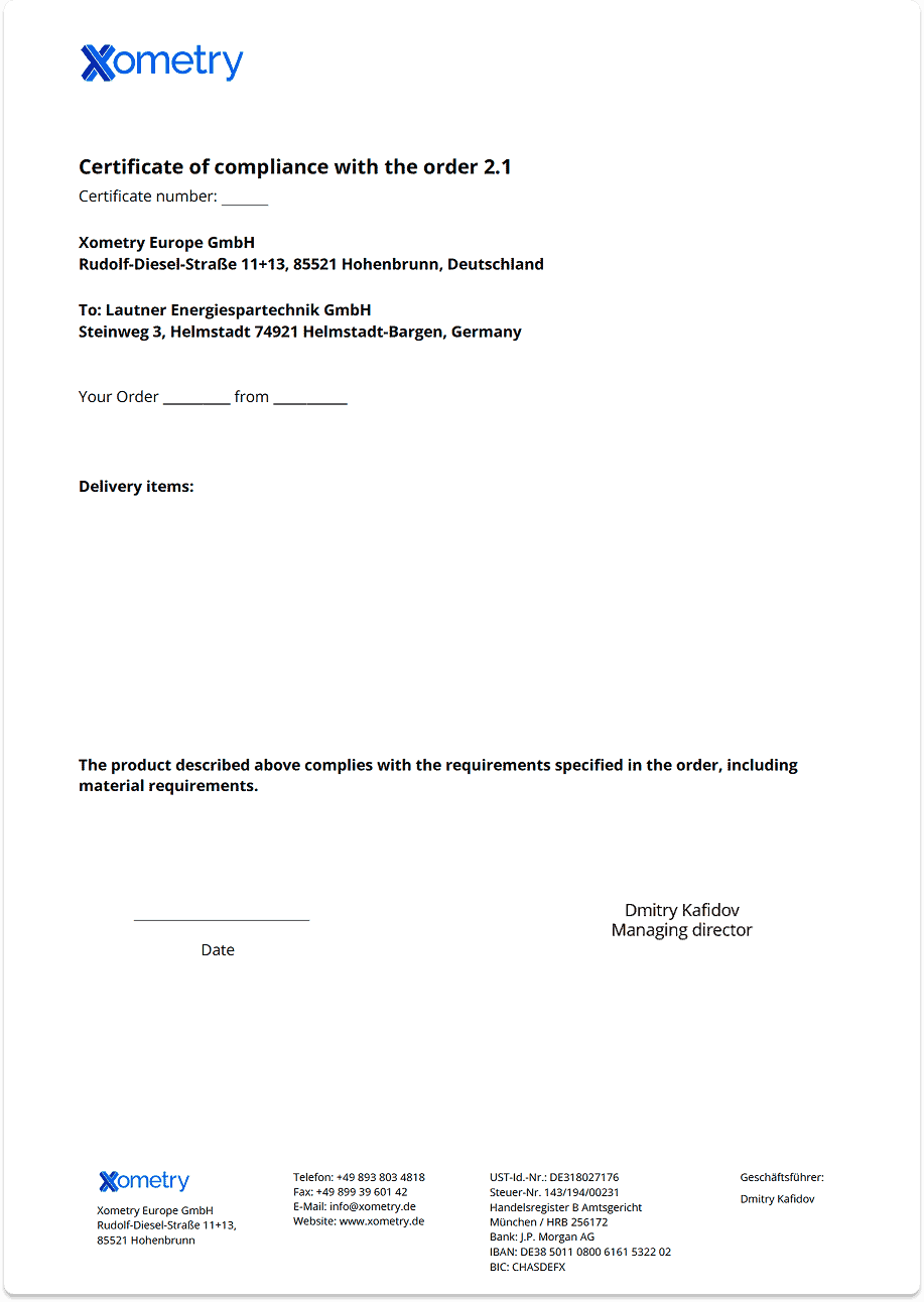 - Uitgegeven door: Xometry Europa